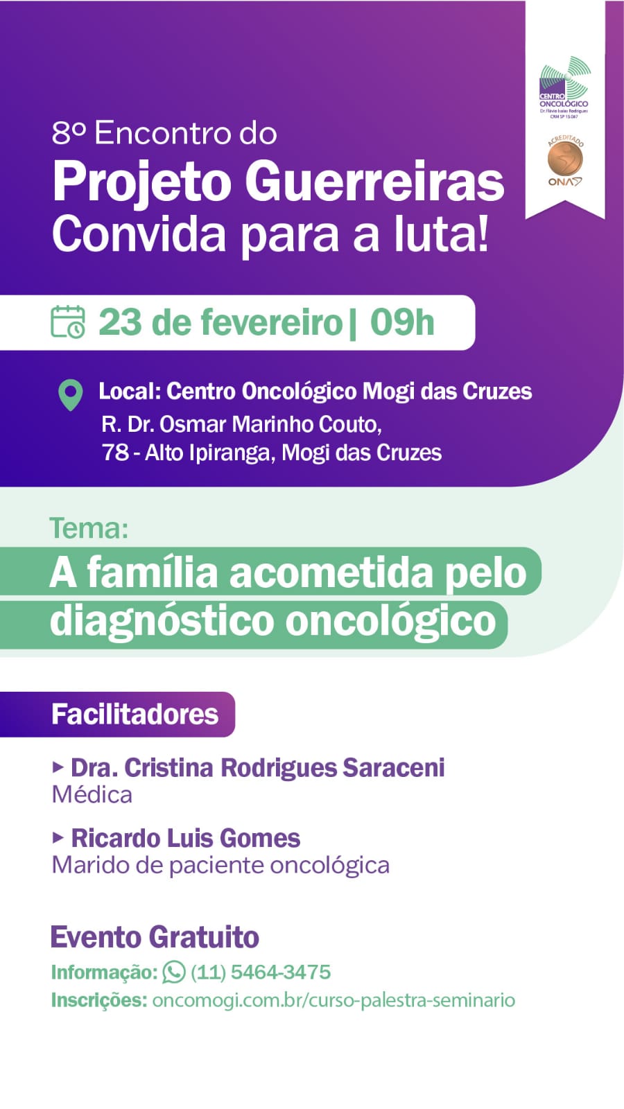 📍 Local: Auditório – Centro Oncológico Mogi das Cruzes