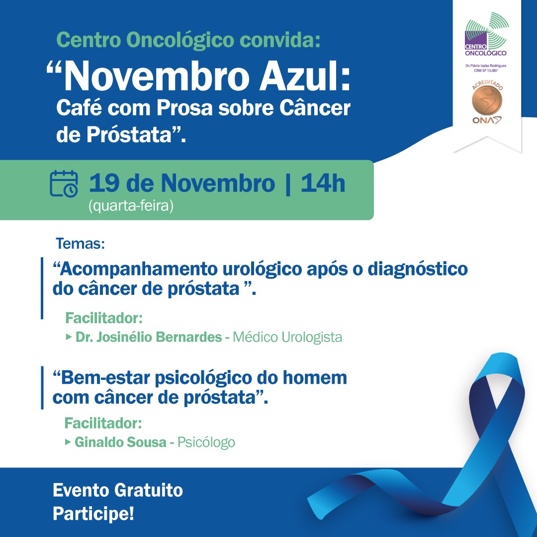 - Acompanhamento urológico após o diagnóstico do câncer de próstata “. Facitador – Dr. Josinélio Bernardes – Médico Urologista