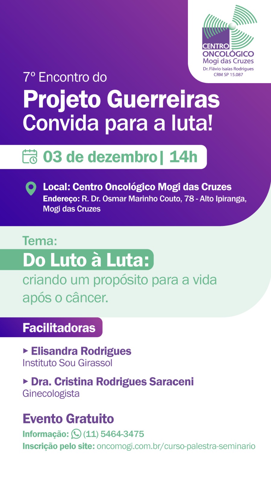 O Projeto Guerreiras convida todas as pacientes, familiares e interessados para mais um encontro especial de reflexão, acolhimento e troca de experiências.