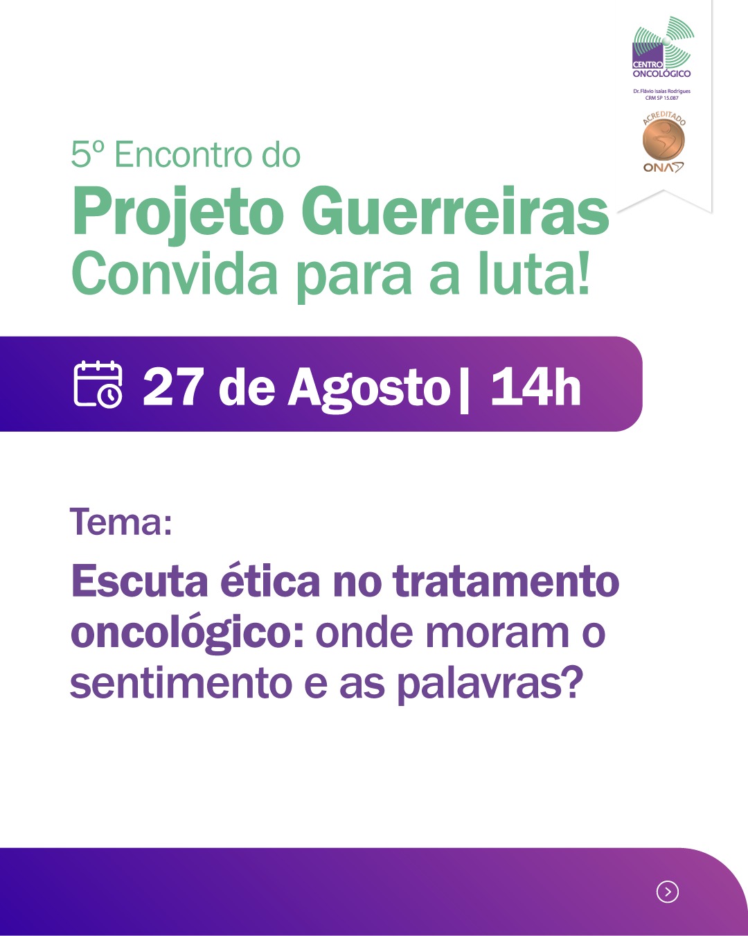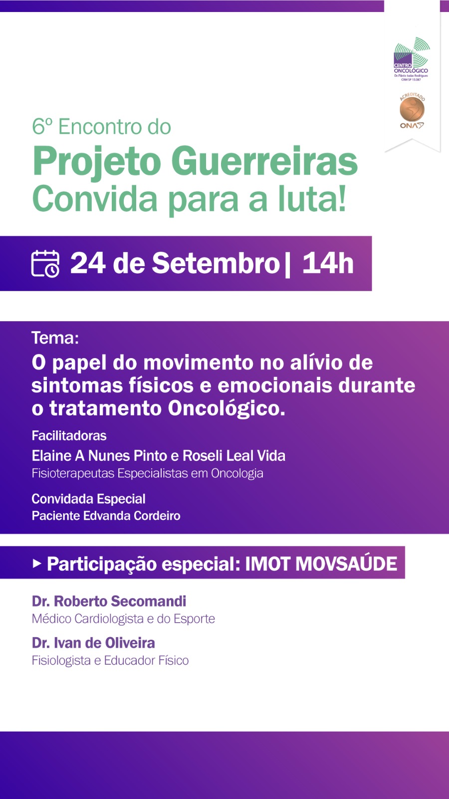 O Projeto Guerreiras convida todas as pacientes, familiares e interessados para mais um encontro especial de reflexão, acolhimento e troca de experiências.