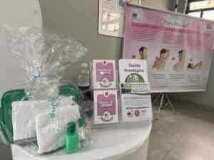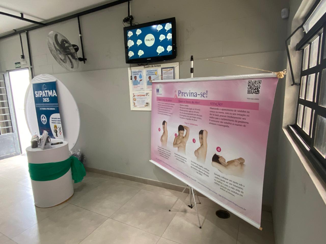 Material de divulgação sobre a prevenção do câncer de mama, durante a Sipatma da empresa Amalfis em Mogi das Cruzes.